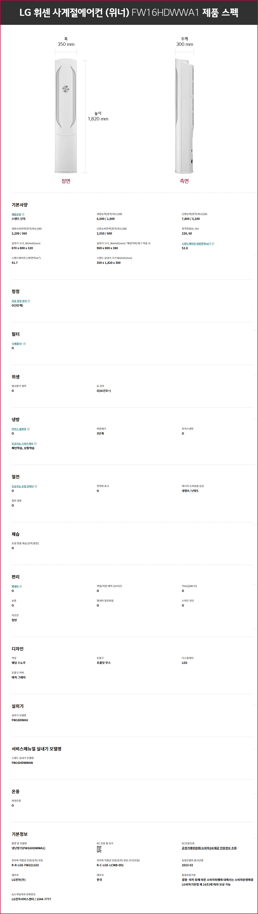 LG휘센 위너 냉난방겸용 사계절 스탠드에어컨 FW16HDWWA1 요약정보 및 구매